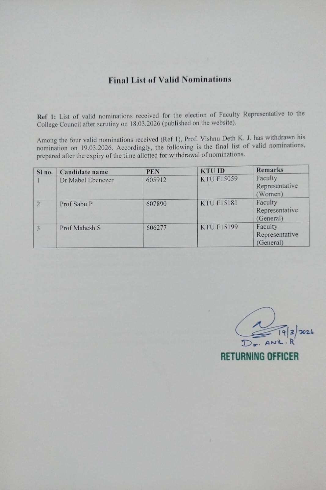 March 17, 2026March 19, 2026 admin Notification – Click Here Nomination Form – Click Here Final Electoral Roll – Click Here Form for Withdrawal of Nomination List of Valid Nominations Received – Click Here Final List of Valid Nominations Declaration of Result